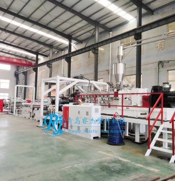 PET片材生產(chǎn)線是我公司結(jié)合多項生產(chǎn)工藝配方體系,鞏固研發(fā)出的一種免結(jié)晶干燥新型擠出片材生產(chǎn)線。采用精密三輥壓延工藝技術(shù),減少了原料的粘度,提高了冷卻效率,大大提升片材的品質(zhì)和產(chǎn)量。? 生產(chǎn)線由平雙擠出機,液壓換網(wǎng),熔體計量泵,模具,斜三輥,定型平臺,靜電消除,表面涂油,牽引機,分割機,收卷機等。